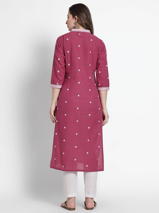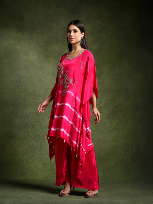 Fuschia Crepe Hand Embroidered Batik Print Cord Set