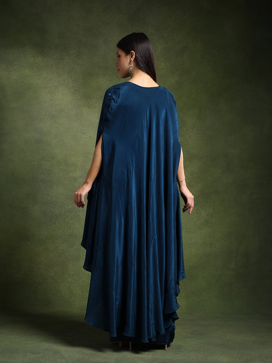 Blue Crepe Hand Embroidered Kaftan with Pants