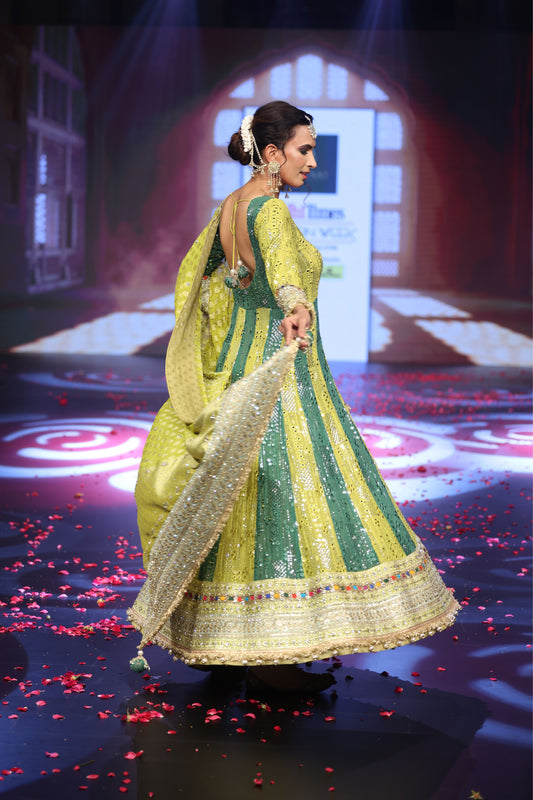 Ghungroo Lime & Green Hand Embroidered Mirror Work Silk Anarkali Set