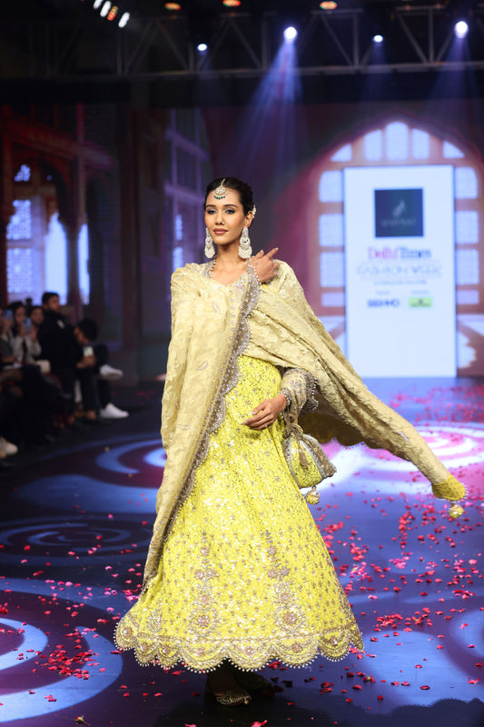 Ghungroo Beige & Yellow Hand-Embroidered Silk Anarkali with Dupatta