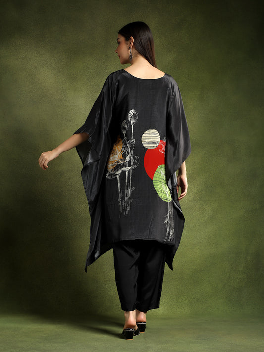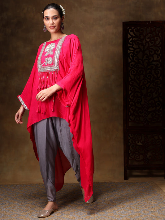Georgette Fuschia Pink Kaftan with Grey Tulip Pants