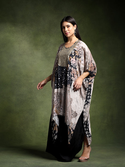 Long Hand Embroidered Satin Silk Bandhej Kaftan