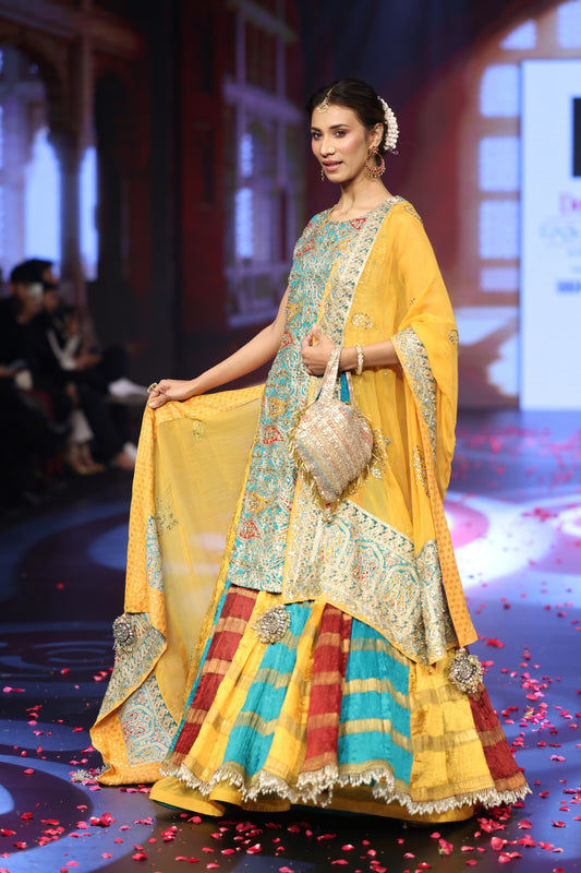 Ghungroo Collection | Qaiynat Hand-Embroidered Zari Aari Silk Shirt & Crushed Skirt with Dupatta